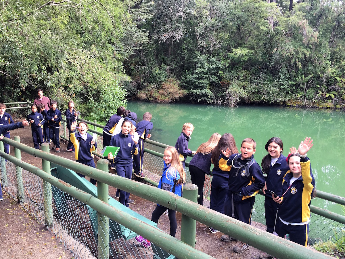 Hace unas semanas los 5ºs básicos realizaron una memorable visita pedagógica al Parque Nacional Vicente Pérez Rosales, en el sector de Ensenada. En ella recorrieron los senderos de Laguna Verde y Saltos del Petrohué, con el fin de comprender mejor las formaciones y características de este tipo de hidrósferas. Los niños se mostraron muy entusiasmados y aprendieron sobre la relación que existe entre las diferentes hidrósferas y la flora y fauna que se desarrolla en ellas.