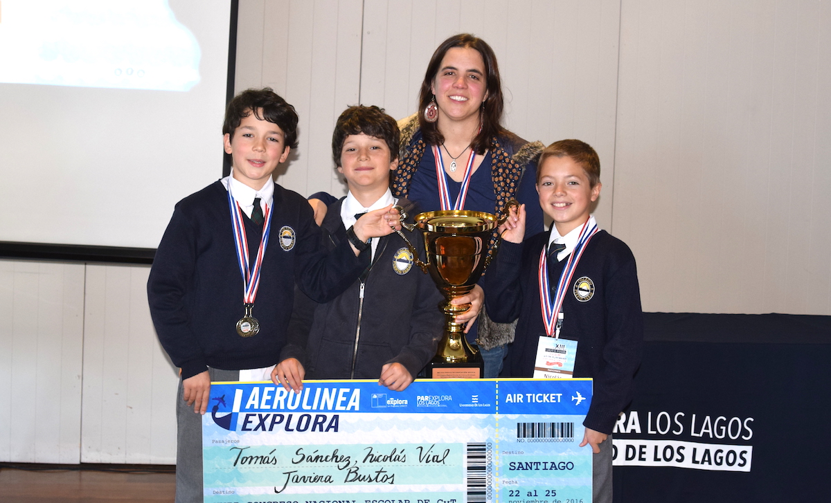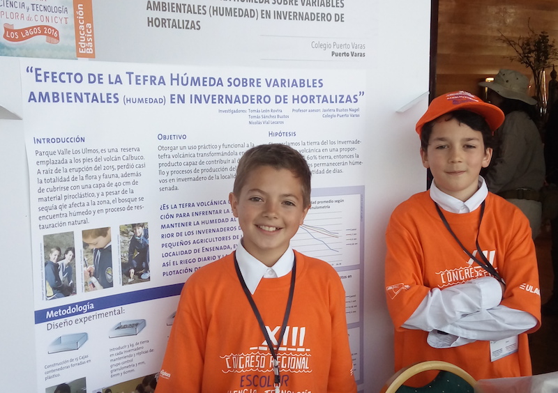 Estamos muy contentos de contarles nuestros pequeños investigadores de 5º básico, con su proyecto científico “Efecto de la tefra húmeda sobre variables ambientales (humedad) en invernadero de hortalizas”, resultaron ganadores del XIII Congreso Regional Escolar de Ciencia y Tecnología Explora de CONICYT, Región de Los Lagos. A fines de noviembre, nuestros representantes, viajarán a Santiago para exponer su proyecto en el Congreso Nacional de Ciencia y Tecnología.