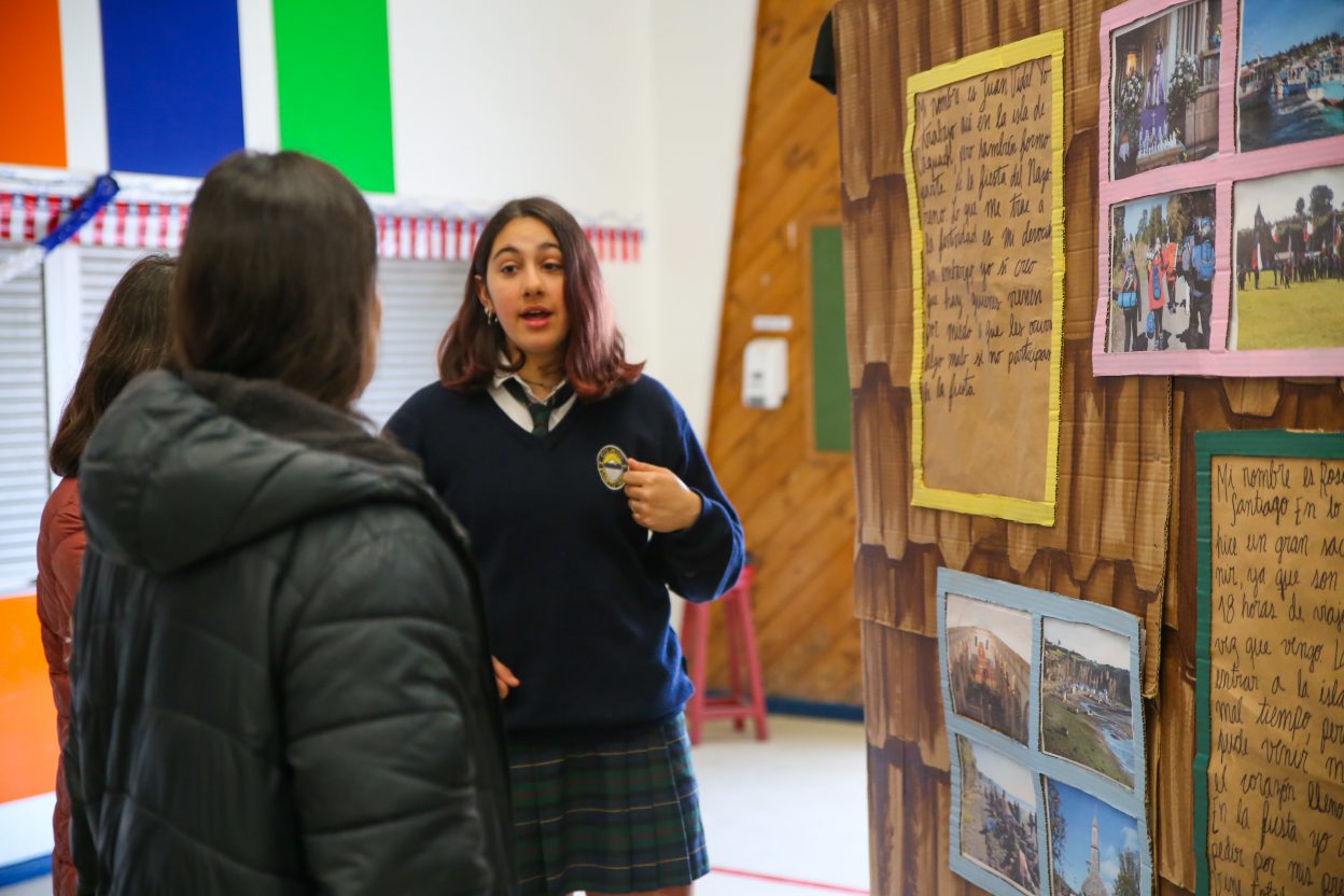 Una completísima exposición realizaron los jóvenes de IIº medio, tras su participación en el Proyecto interdisciplinario Caguach, en el cual viajaron a Chiloé con un grupo de profesores de distintas coordinaciones y nuestro Rector, Gabriel Jordán.