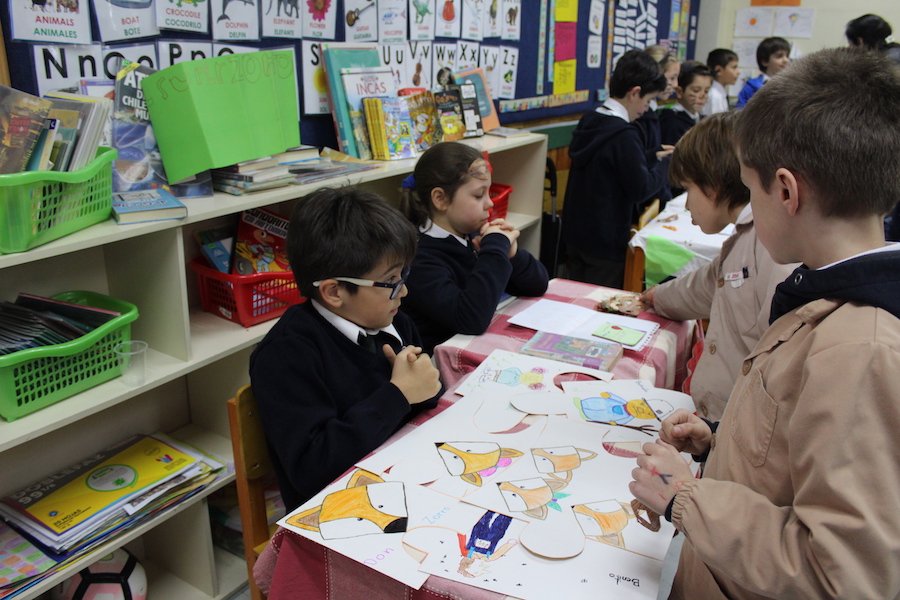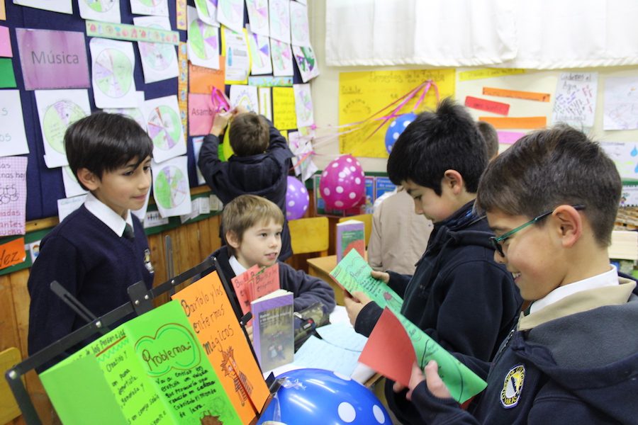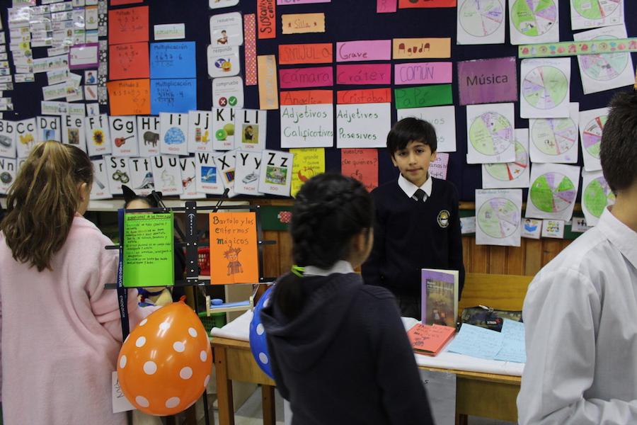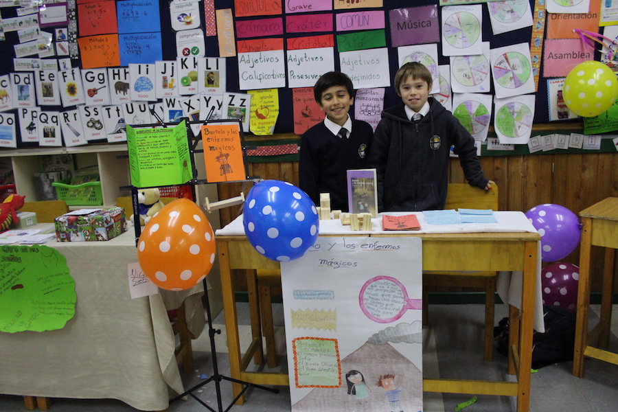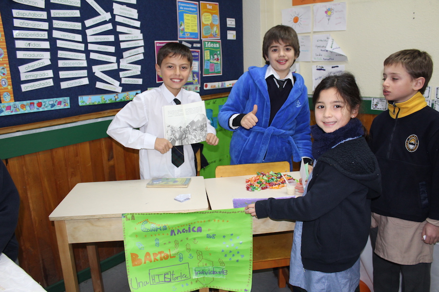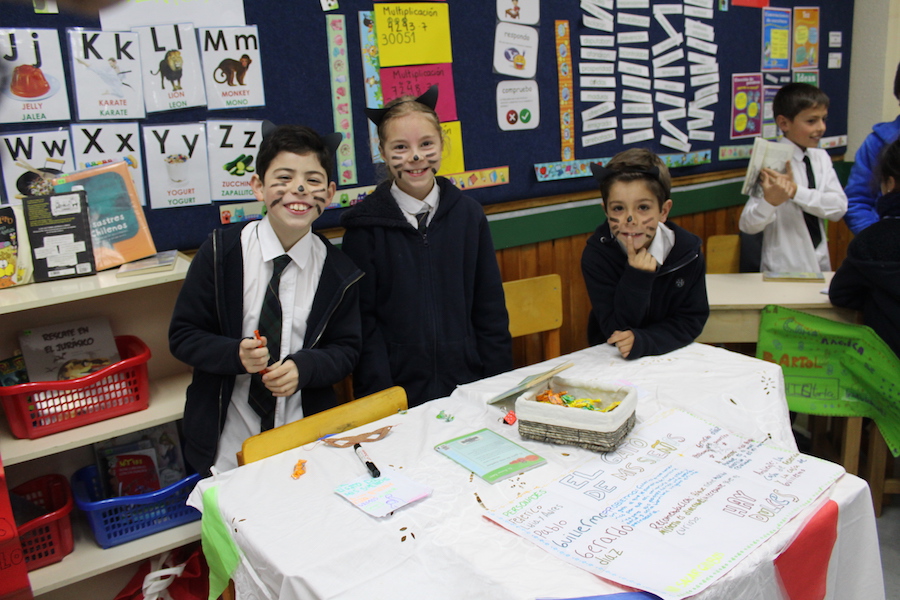 Con mucho entusiasmo y gran producción, nuestros alumnos y alumnas de 4º básico, presentaron una feria del libro a sus compañeros de 3º, con recomendaciones de sus textos favoritos, degustaciones, juegos, disfraces y más.